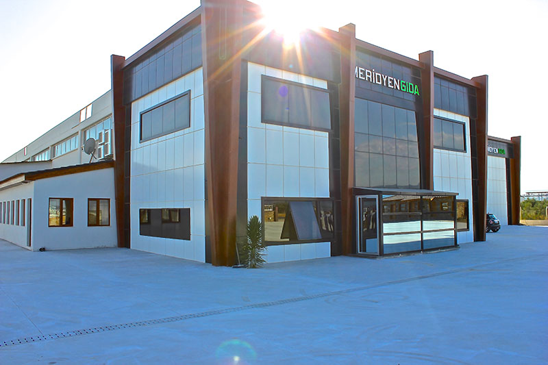 İlk farbikasını 1999 yılında Bekirler Köyü’nde kuran Meridyen Gıda, 2009’da Zeytinliova karayolu üzerinde ikinci fabrikasını kurmuştur.